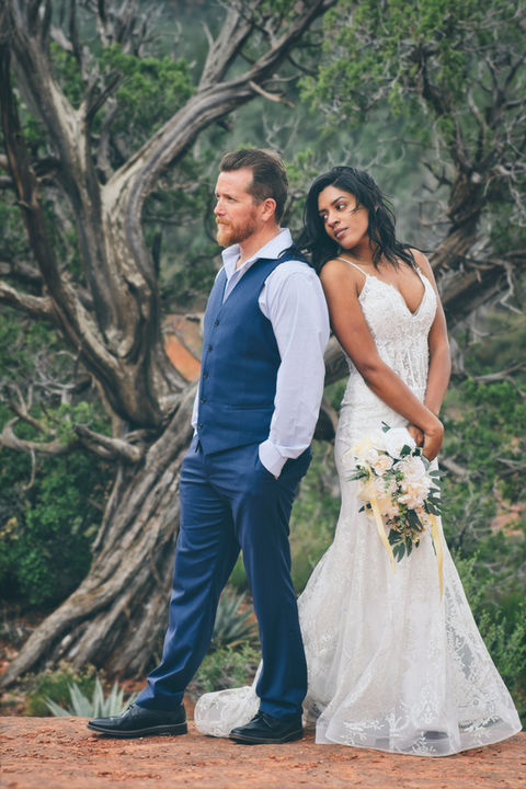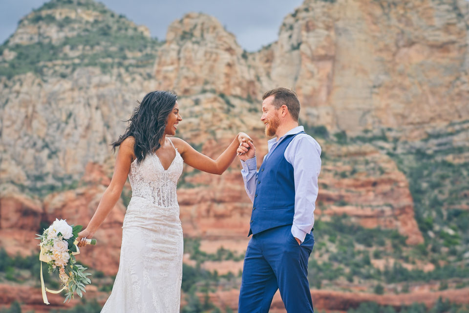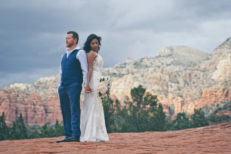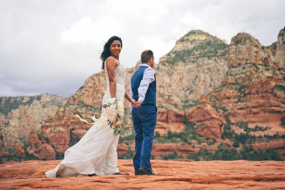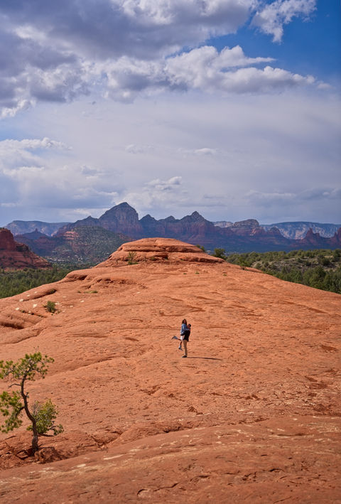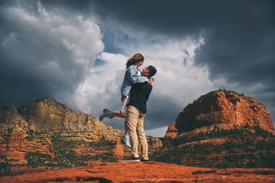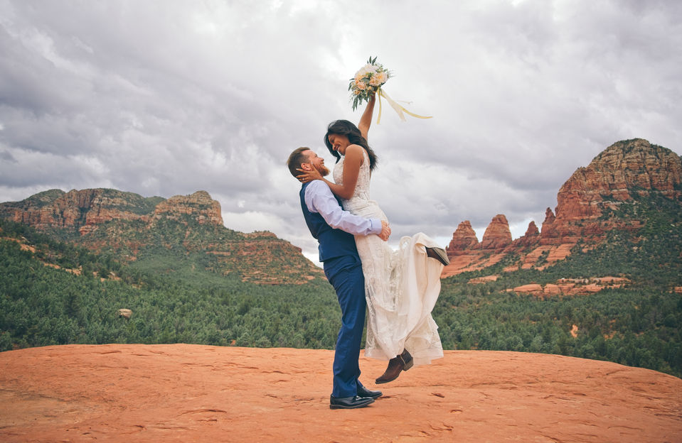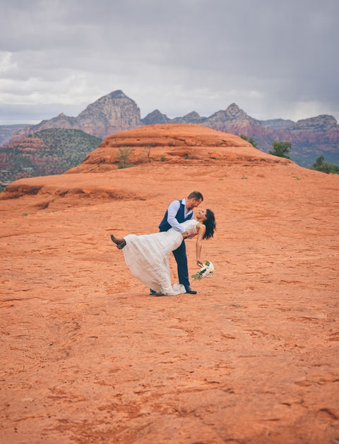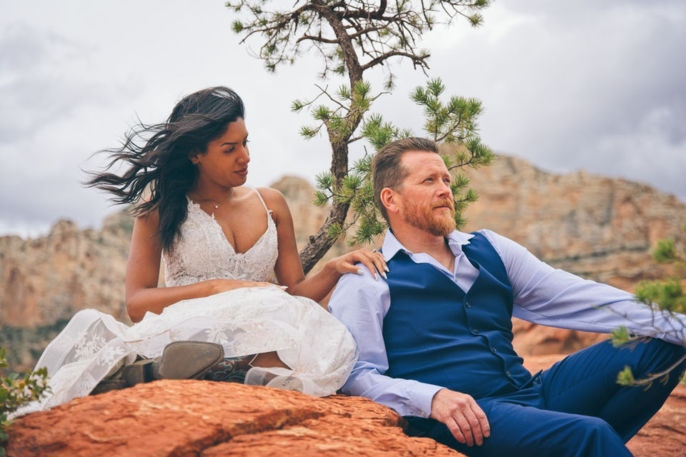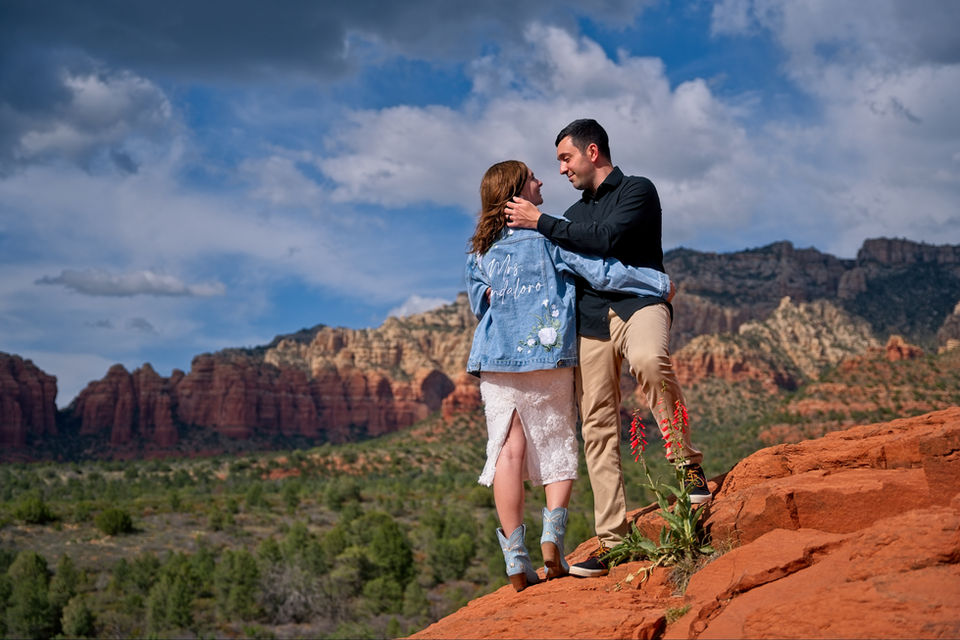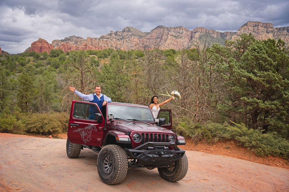 Embark on a jeep adventure along Arizona's most picturesque rock-crawling trail. This route takes you to Submarine Rock, a vast expanse of flat red rock in Sedona, offering panoramic views that are simply breathtaking. It's the perfect location for the epic elopement or capturing stunning photos with your partner.